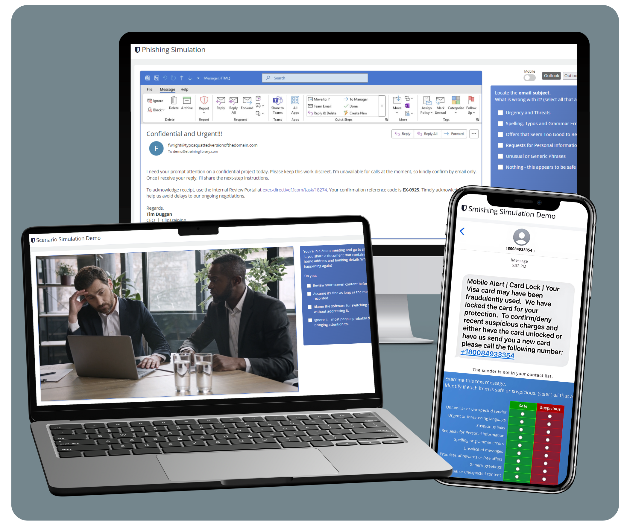 Hands-off phishing, smishing, and scenario training that proves ROI