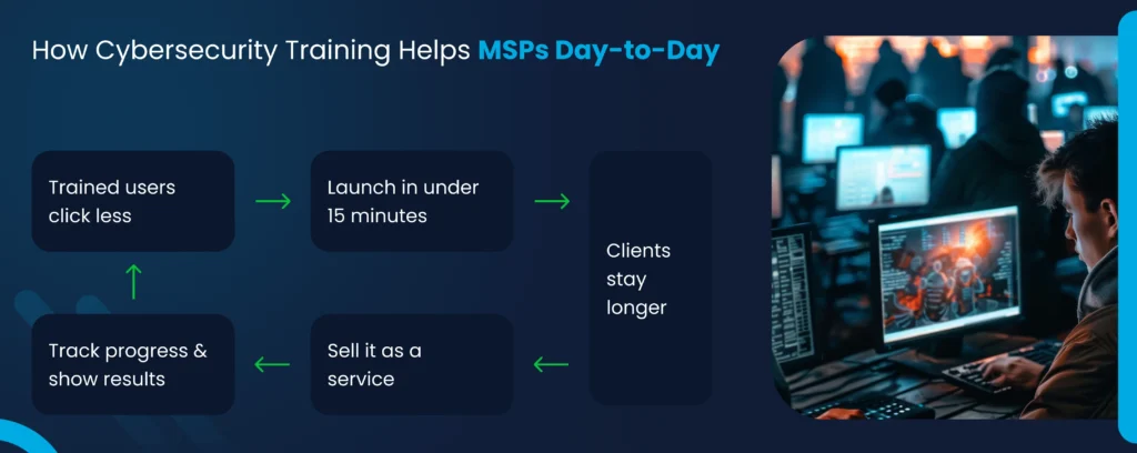 MSPs can enhance client security by offering comprehensive cybersecurity training programs tailored for MSPs.
