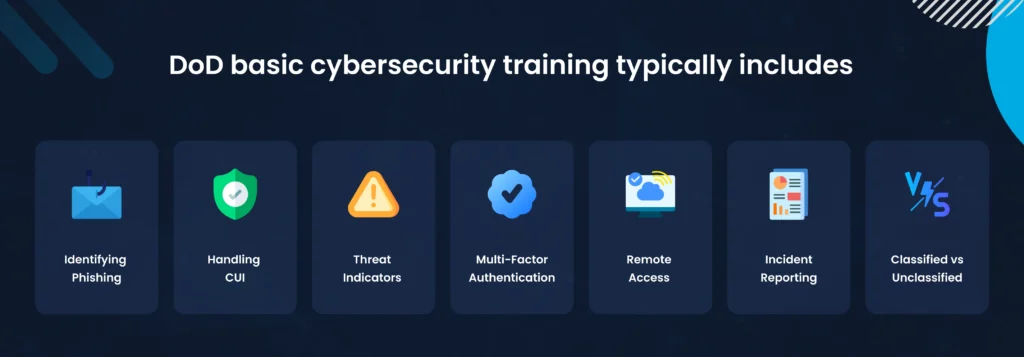 DoD basic cybersecurity training typically includes: