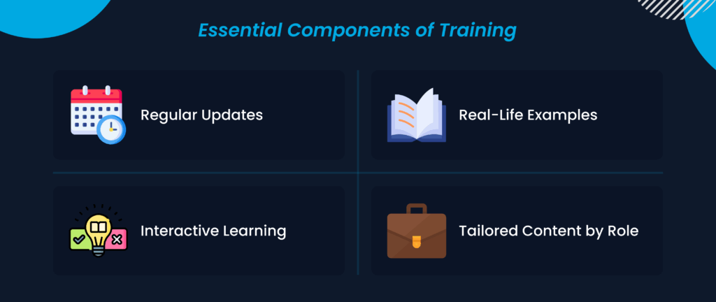 Avoid overwhelming employees. Start with the basics—strong passwords, phishing awareness—then follow up with monthly or quarterly lessons on new threats. Small, steady steps work best.